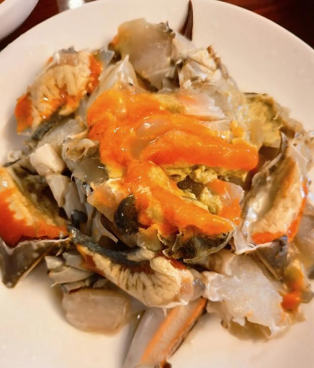 烹饪这道菜时,先把新鲜的梭子蟹处理好,切成合适的块状,放入热油锅中翻炒,蟹块在锅中迅速变色,散发出阵阵鲜香。接着加入切好的年糕继续翻炒,年糕在翻炒过程中逐渐吸收了蟹的鲜味,变得越发诱人。同时,还可以根据个人喜好加入一些配菜,如青菜、洋葱等,让整道菜的颜色更加绚丽多彩,口感也更具层次。我更爱的是加入这里也有的草子菜,现在好像很少见到有了,记得之前来的时候是有这个菜的,叫草子,印象特别深的一个菜。