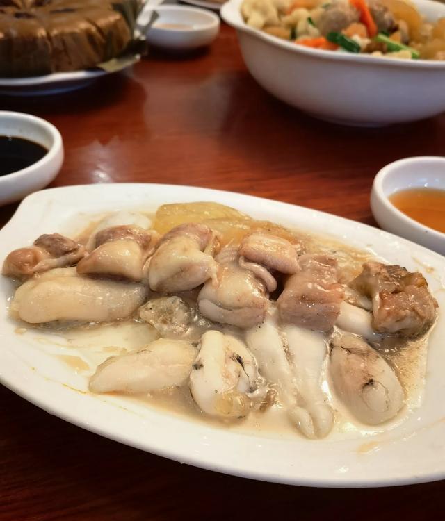 梭子蟹炒年糕,蟹肉鲜嫩多汁,完好地保留了梭子蟹原本的鲜甜,年糕则软糯又入味,每一口都带着浓郁的蟹香,仿佛把大海的味道融入到了这道菜的每一处。吃的时候,先品尝一块蟹肉,感受那鲜美的滋味,再夹上一块年糕,让蟹香在口中弥漫开来,这种独特的搭配让人沉醉其中,让人吃了还想吃,是来舟山不可错过的美食体验之一。